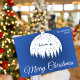 Letar du efter ett glad jul-kort? Detta klassiska julkort med tomtens släde på den snöiga himlen ovanför en skog och texten "God Jul" är så elegant och magisk. Du kan lägga till namnet på din familj på framsidan och under meddelandet på baksidan för att göra det unikt.