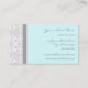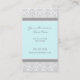 Visitkortar i eleganta och moderna ljusa pastellfärgade turkosblått, grå färg och mönster för blom- vintage för vitklassiker damastast. Anpassadet med din kontakt specificerar, stilfullt och kvinnligt.
