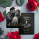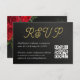 Osa con estilo. Esta tarjeta de bekräftmación combina parectamente con tu invitación de boda audaz y romántica - con flores rojas, detalles dorados y un toque de elegancia. Incluye un código QR y se puede personalizar con los detalles de tu evento.