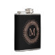 Sitt på din favoritlibation från den här chicen, elegant-kolven. Intricate ro guld medallion-designer mot rikens svarta bakgrund, där ditt första monogram visas i mitten. Underbar gåva till brudtärnor! Obs! ro guld är en tryckt digital bild, inte guld.