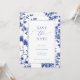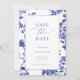 Eleganten Blått Blommigt Toile Spara datum Inbjudningar