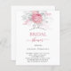 För en elegant Möhippa. En vit snyggt bakgrund. Dekoreras med rosa och vita blommigtar, ro och faux silver foliage. Anpassa och lägg till information om namn och party.