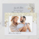 Meddela din stora dag med det här bröllop spara datum-kortet med en anpassade-fotomall och en känslig botanisk blommigt. Den vita och blå paletten färg parar vackert med klassiskt kalligrafi-skript och förfinad typografi för en enkel, minimalistisk men ändå klassisk inbjudan till elegant. Perfekt för par som i kärlek utan tidsgräns smälter stil med en naturlig beröring. Anpassa din i dag för att ange tonen för ditt speciella firande!