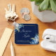 Elegant blå och vit ros dekorerar denna vackra nyckelkedja för blommigt kväll i bröllop. Chicen faux guld foil ram accentueras med söt indigo vattencolor blommor och en underbar gult botanisk sprit. Parets namn är skrivet i ett klassiskt, vitt kursivt skript i gräns på denna moderna vintermottagningsförmån för en contemporary brud.