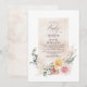 Denna vackra inbjudan till babydusch är perfekten blandning av klassisk och boho-inspirerad. Det sofistikerade skriptteckensnittet, tillsammans med den mjuka pastellskalade botaniska designen, ger bara högerna elegans.