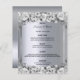 En elegant och ett glamoröst bröllop-menykort. Svart och vitt vattenfärgat ro som dekorfärg. Mallar för namn, datum och bröllop-menyn. Ett faux silver ram och ett faux silver metallic tittar färg. Svart färgad brev. Baksida: Faux silver metallisk tittar bakgrund.