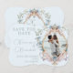 En tidsålder för snabb vintage med temat bröllop design. Med elegant ramade vapensköldar som överger initialer Mjuka blått med blått lila och nyp i en pastellnyans som återspeglar nödtiden. Vintage och elegant personligt bröllp design. Ändra enkelt informationen till ditt eget anpassad design. Ändra ställe-hållarbilden med ett eget foto. Elegantens formella bröllop-design.