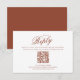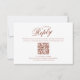 Gör dina bröllopsinbjudningar oförglömliga med den här OSA kort i elegant bröllop i en minimalistisk burgundkonstruktion. Med klassiskt kalligrafiskt skript och traditionell typografi fångar det traditionell elegans och sofistikering. QR-kodmallen är ett bekvämt sätt för gästerna att komma till OSAN, medan ordalydelsen i det vänliga svaret tillför en tankfull beröring. Det här gästkortet för gästsvar på snyggten kompletterar en formell klassdesign och parar sömlöst med din matchande kontorssvit för ett sammanhängande och polerat utseende.