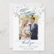 Eleganten Dusty Blue Blommigt Foto Bröllop Tack Kort