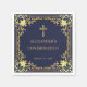 Elegantens marinplan och guld religiösa med vintage luft, som rekommenderas för en pojke, har en ornat faux foil ram med elegant baroque guld på marin blå bakgrund. Ovanför texten finns det en religiösa kor i Faux guld-folie. Tillfälle ligger också i faux guld, resten av texten har ett gyllene färg liknande det faux guld ram. Vintagen, Ornate ram, bygger på en antika Fransk bok-täckmantel, av Georges Mercier (1885-1939) - Madame de Maupin av Theophile Gautier, utgåva 1911, nu offentlig.