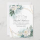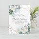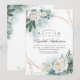 Vattenfärgsmörjning, guld-geometriska ram och vita peoniska baptisminbjudningar