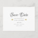Den här chicen sparar datumkortet med guld-cupider på båda sidor av namn och du sparar datuminformationen som anges i klassisk elegant-typografi. På motsatt sätt kan du spara datuminformationen, inklusive webbplatsen bröllop, med returadress och utrymme för mottagarens adress.