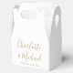 Elegant bröllop-förmånslåda med guld chic namnteckning skriptdatum namn och speciella datum på vit bakgrund. Du kan anpassa dig med ditt eget tack till ditt meddelande på motsatt sida. Ett perfekt sätt att tacka gästerna! Designad av Thisisnotme©