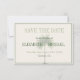 Handflatan Träd elegant bröllop "Spara datumet". En elegant handflatan träd ligger över Bride och Grooms namn på en brant bakgrund. Elegantens moderna formgivning bröllop. Informationen ändras lätt till din. Det moderna skriptet ändras lätt för egen anpassningsbar. En inbjudan från personligt bröllp från en svit av bröllop stationär på Just Bra Designer.