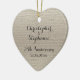 Denna enkla, elegant Personlig Hjärtformade julprydnad på Bröllop-årsdagen är en billig, unik gåva. Standard är 25-årsdagen, men det är enkelt att anpassa, ändra eller ta bort exempeltext. Perfekt för ANY Bröllop-årsdagen. Utskrivet på framsidan och baksidan. Alla Höger förbehållna © 2017 Alan & Marcia Socolik