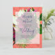 Ett marinblått texturerat mönster är bakgrunden till denna stora blommigt levande inbjudan till korallbouquet-bröllopet. En modern elegant som lätt kan ändras till din egen information. En stående inbjudan till ensamen som också ingår i en Bröllop-svit från Just Bra Desigements