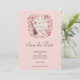 Spara datumkortet med en illustration i en vintage romantisk stil. Musik noter, blommor, fjärilar och gitarr. En underbar sentimental vibe.