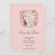 Spara datumkortet med en illustration i en vintage romantisk stil. Musik noter, blommor, fjärilar och gitarr. En underbar sentimental vibe.