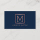 Det här affärskortet har en modern elegant faux guld-monogramdesign på marin blå bakgrund. Anpassa den med din egen text.