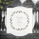 En minimalistisk utandning av oliver träd som är målad i vattenfärger, med namn och numeriskt datum för bröllop inuti.