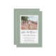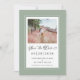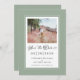 Sage Grönt Save Date Förlovning Photo bröllop-kort har en vacker chic gräns i sage-grönt som innehåller en elegant petite white gräns. Kalligrafi och manus är kol-grått på vit bakgrund. En modern mall för datum och år kompletterar den unika kalligrafiutformningen. [OBS! visningen för datum i bröllop visas, användor lodrät pub eller raden som finns ovanför \ på en tangentbord eller på din smarta enhet med speciella tecken. Du kan också anpassa med valfritt annat tecken.] Anpassa med ditt favoritfoto för förlovning och annonsera din stora dag! Andra formgivningar som finns i den här sviten. (För att du ska kunna placera bild på bästa sätt bör du använda en fotoredigeringssida verktyg till mitten och skörd INNAN du överför till Zazzle-webbplatsen.) E-post invitationsuites@gmail.com med frågor eller anpassningsbar.