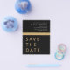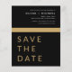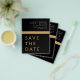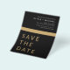 Budgetera Bröllop Elegant Black och Guld Spara datumkort. Spara datumkorten innehåller en modern handskriven kursiv skripttypografi som är elegant, enkel och modern till använda efter att du har minimalistisk enkel bröllopsdag firande.