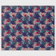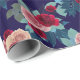Elegantt slående in papper i marinblått med en blommönster som beströs över den. Ro av persikan och rosor tillsammans med djupt - röda pioner dansar i sängar av vis man, minten och djupblå löv.