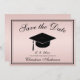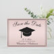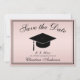 Inbjudan din familj och vänner till din högskola eller högskoleexamen i firande med den här eleganten sparar datuminbjudan med ett kort. Den här designmallen innehåller en trendig svart skripttypografi som accentueras av en svart hatt på en faux light ro guld-bakgrund. Anpassa ditt namn och datum på framsidan och baksidan med mer information om party. Gratulerarare på studenten! Designad av konstnären ©Susan Coffey.