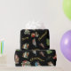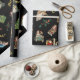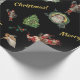 Vibrant inslagning papper som dekorerats med bilder från en gammal epok med "God jul" i vackra guld färg på svart bakgrund.