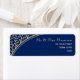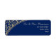 Lyx, modern, elegant marinblå returadressetikett, med guld blommigt-snurrar. Perfektens val för Glam bröllop!