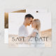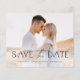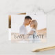 Ett budgetfoto Bröllop spara datum med fullt utfallsfoto, modern Elegant och enkel layout på framsidan. Baksidan har ytterligare två foton och mer information. Klicka på knappen Redigera om du vill anpassa designen.