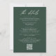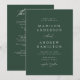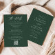 Elegant, allt-i-ett-bröllopsinbjudningar som innehåller information om namn och bröllop-ceremonin på framsidan med vitt brev med bakgrund av grönten i skogen. Ett modernt kalligrafiskt skript kompletterar den här chicens bröllopsinbjudan till grönten. Anpassa baksidan av kalligrafinbjudningarna till bröllopet med bröllop-uppgifter som mottagningsinformation, hotellrum, OSA och bröllop webbplats. Lägg till den önskade webbplatslänken för bröllop till den angivna QR-kodmallen så att dina gäster enkelt kan OSA online och visa ytterligare bröllop-information. Denna mörk grönt inbjudan till QR-kodbröllop är perfekt för både formell och avslappnad bröllop under vilken säsong som helst.