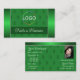 Gör ett bestående intryck med den här eleganten affärskort-designen som innehåller med skarp grönt gräns och mönster i monogram på gröntens bakgrund. Anpassa enkelt det här affärskortet till ditt varumärke, din logotyp och ditt (medarbetarnas) foto. Allt du ser är faux foil, men en kvalitetsutskrift. ♡ DIN FAVORITE - Designer:-) Modern och professionell affärsvaror. ♡ jag önskar er lycka till med denna punkt. ♡ www.zazzle.com/store/your_favorite ♡ www.zazzle.com/store/favorite_markeplies ♡