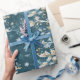 Önskad i fressande anda med denna vackert designade julomslutning papper som har en rik mönster av guld och vit på en djup blå bakgrund, perfekt för helgdag.