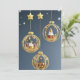 Golden- och rödjulsbubblor och prydnadsföremål hänger elegant ihop med rosett band och skapar en festlig och förfinad visning för dekoration mot en mörk blått bakgrund med subtil snöflingor.