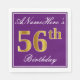 Den här enkla och elegant pappra napkin-designen innehåller ett meddelande som "ANamehere's 56 Birthday" (med 56:e färgen "som har ett utseende som liknar guld) inom ett fyrkantigt område av lila färgad med en enkel kontur av gräns. Namn är i en text som liknar en text med en vit färgad och kan vara personlig. Napkins som dessa kan kanske användas i en födelsedagsfest till någon som firar sin femtiosjätte födelsedag. [~Z0000140]