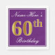 Den här enkla och elegant pappra napkin-designen innehåller ett meddelande som Namn-här:s 60:e födelsedag (där "60:e" har en ytliknande guld) inom ett fyrkantigt område av lila färgad med en enkel gräns-kontur. Namn är i en text som liknar en text med en vit färgad och kan vara personlig. Napkins som dessa kan kanske användas i en födelsedagsfest till någon som firar sin sextioårsdag. [~Z0000140]