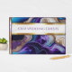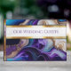Elegant bröllop bok har en utformning som innebär att lila, guld och teal färg flyter runt. Anpassa till namn och till bröllop.