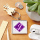 Elegantens Lila Marble Diamond Initial Script Fyrkantig Silverfärgad Nyckelring
