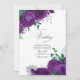 Gör ett fantastiskt första intryck med den här elegantens inbjudan till lila och grönt blommigt bröllopsinbjudan. Den här designen är en perfekt för ett sofistikerat firande som har lyxfritt lila ro, spola grönt accents och en modern QR-kod på baksidan för enkel åtkomst till händelseinformation. Helt anpassade, det är ett idealiskt sätt att detaljerna i din speciella dag med stil och bekvämlighet.