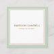 Fyrkantiga, vita, professionell- eller personprofilkort med grönt gräns. Anpassade namn och titel/företag namn. På baksidan finns anpassadet fält för namn, rubrik/företag namn/specialitet och kontaktuppgifter. En minimal och klassad utformning