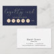 Enkel dammig blå bakgrund med guld elegant-typskriptet "förmånskort" och anpassningsbar i sans serif-teckensnitt. Det finns en vacker kontrast mellan svart bakgrund och gyllene accenter. All företagsinformation finns i elegant serif-teckensnitt och minimalistisk layout på baksidan