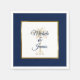 Anpassa dessa elegant marinblåa och guld-servetter med speciell beröring. Denna moderna utformning har namn och bröllop, som är ett konstnärligt gyllene handflatan och guld-folie ram över marinblå bakgrund. Kontakta mig om du behöver hjälp eller matchande artiklar.