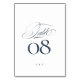 Elegantens marinblå på vit kalligrafi Bröllop Bordsnummer