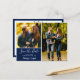 Tungt blått elegant spara vykortet med 2 foton från förlovningen.