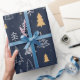 Elegantens marinblått och Guld Träd jul Presentpapper