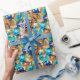Den här personligen som omsluter pappra visar en lyxig, sönderfallande metallisk utformning som innehåller en blandning av festligt inslag. Blåblå juldekorationer paras med guld och kopparblad, inklusive löv och holly, skapande en rik kontrast. Den invecklade detaljen ställs in mot en glödande teal bakgrund som förstärker den övergripande elegansen. Perfekt för att höja dina helgdag-presentationer. Designen blandar moderna färg-paletter med klassiska säsong-motiv och ser till att varje paket känner sig som ett konstverk. Texten kan ersättas med din egen text eller så kan den tas bort.