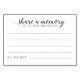 Den här eleganten A-minneskort är perfekten som tillägg till din bröllopsmottagning eller möhippa. Den här designen har en kombination av handskrift och blockera typsnitt i svart. Det finns utrymme för gäster att lämna sina minnen och namn. En del av Alejandra-samlingen.