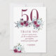 Elegant feminin 50 år födelsedagsfest namn och personlig av meddelanden tack vare ditt kort med vattenfärgad burgundi, dammiga blå ro bouquets och ett modernt trendig typografiskt skript.