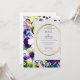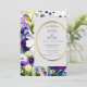 En inbjudan från elegant bröllop som är gjord av heliga violetta blommor med handskrift av elegant i ram i guld